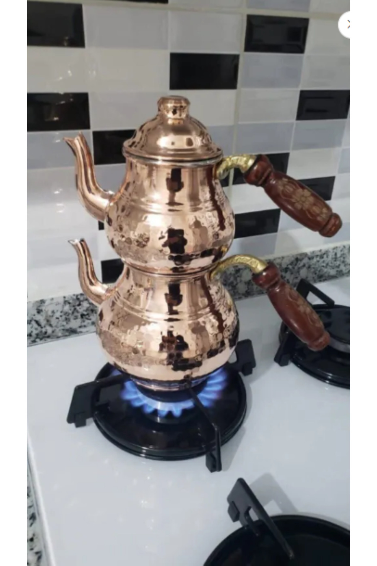 - Bakır malzemesi sayesinde uzun ömürlü kullanım ve dayanıklılık sunar; - Orta boy tasarımı, ideal çay demliği kapasitesiyle günlük kullanım için mükemmeldir; - Şık ve modern görünümüyle mutfak dekorasyonunuza estetik bir dokunuş katar; - Ahşap kulpu, hem fonksiyonel hem de estetik bir detay olarak çaydanlığın tasarımını tamamlar;