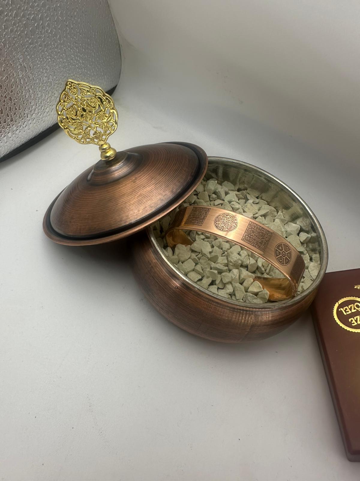 Ham Saf Bakır Mıknatıslı Manyetik Bakır Kutulu Zeolit Kumlu Bakır Bileklik - Hediyelik Kutuda