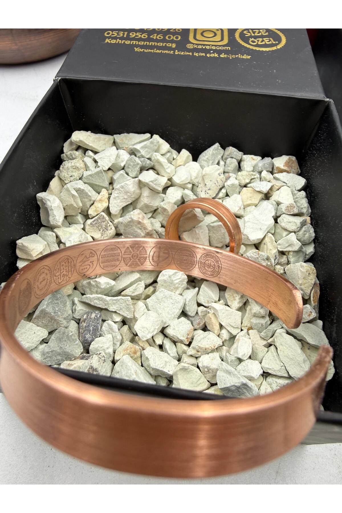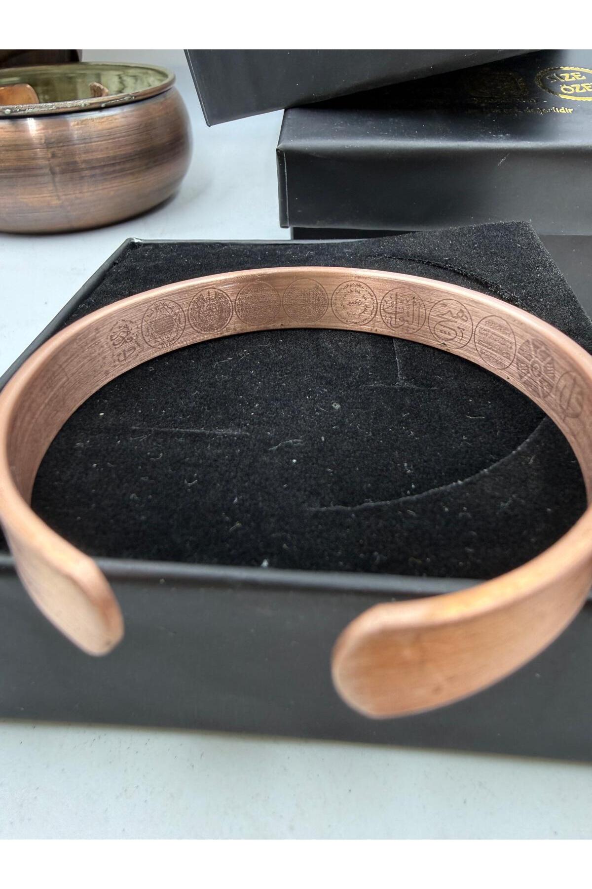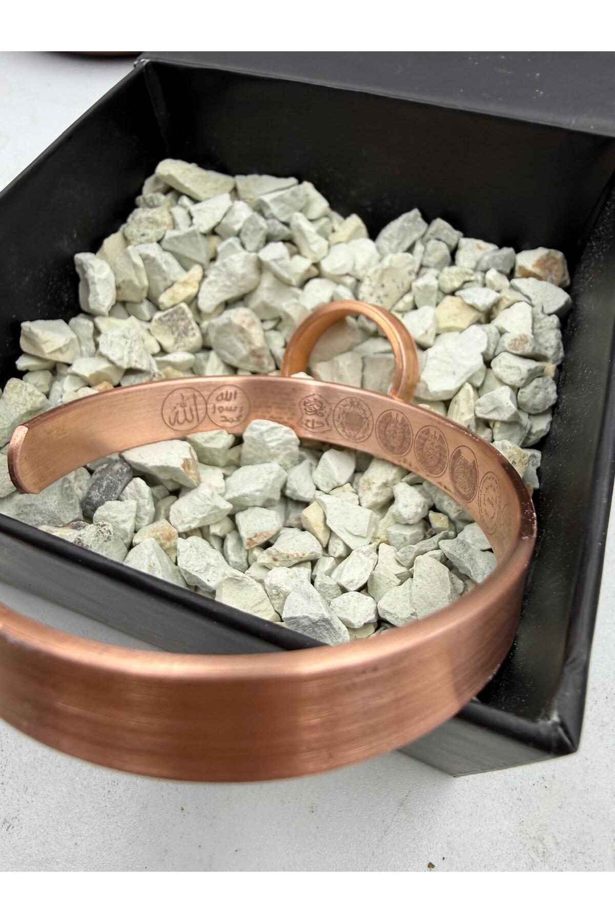 Ham saf Bakır Zarif Dışı Düz İçi Fulkoruma Zırhlı Zeolit Taşlı bakır bileklik-Hediyelik Kutuda